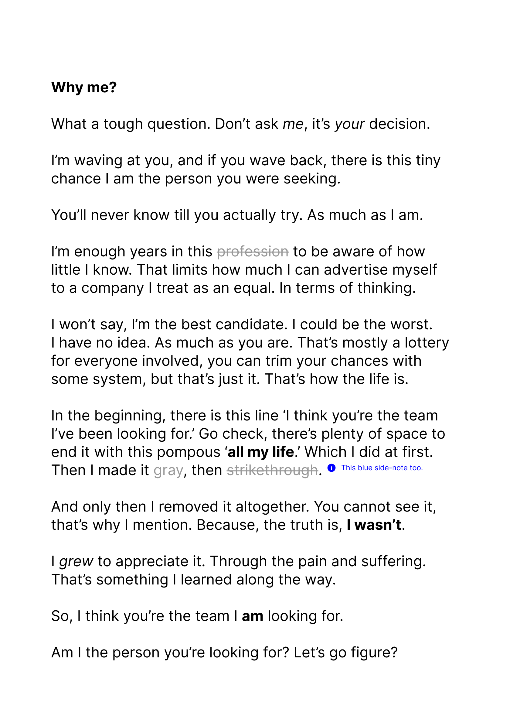 So, as I’ve set the proper context for this, let’s go try to explore my attemp at pitching myself to 37signals.
